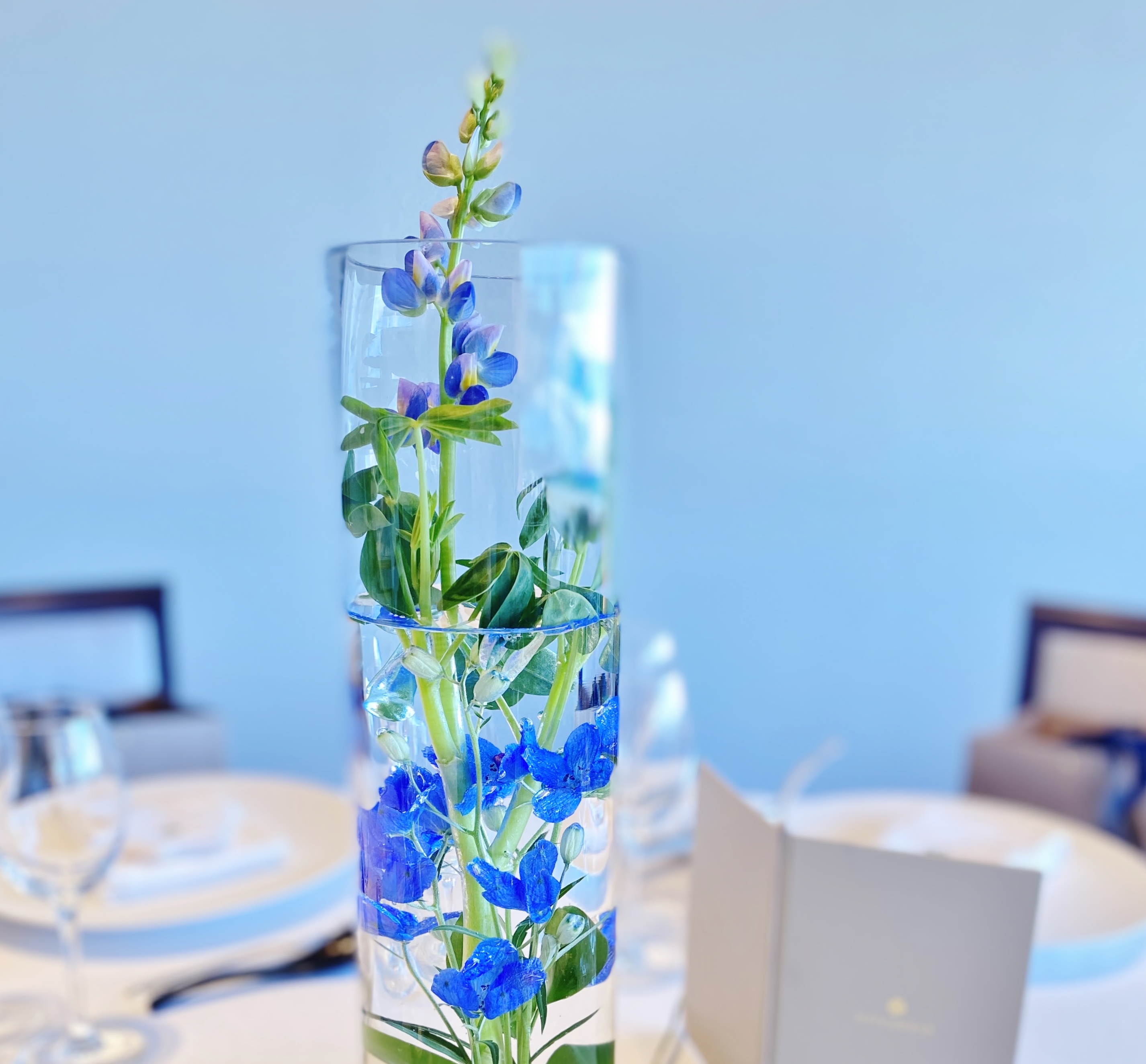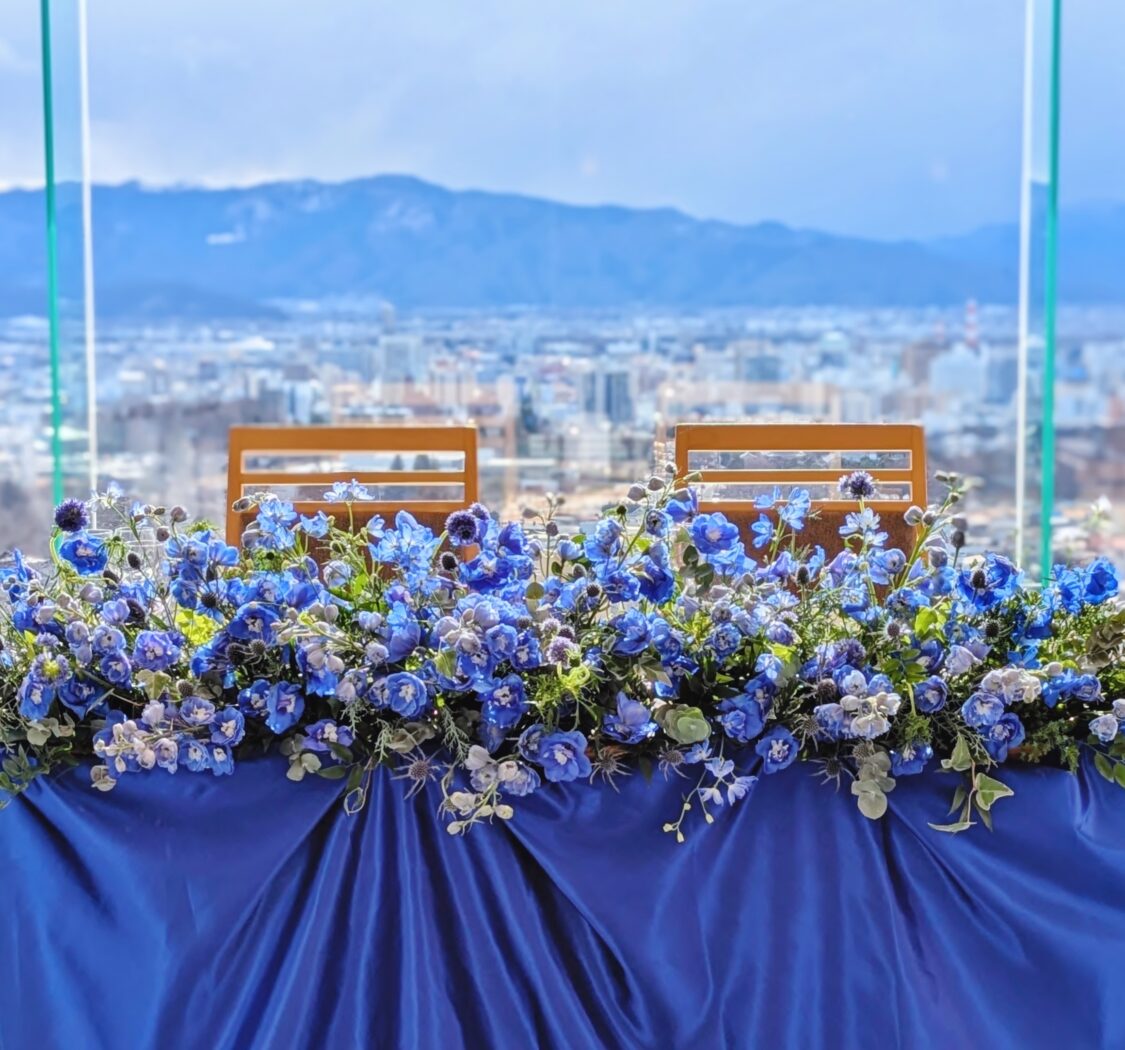 春をイメージするピンクや黄色などに混じってブルーで装ったバンケットを時どき目にします。